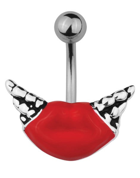 Navelpiercing med Röda Läppar & Vingar
