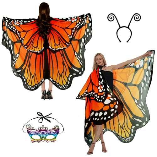 Fjärilskostym damer vingar fjärilvingar vuxna tvåstegs karnevalkostym damer cape utklädsel fjärilar kostym tillbehör 3 set ansiktsmask givare fjäril hårband
