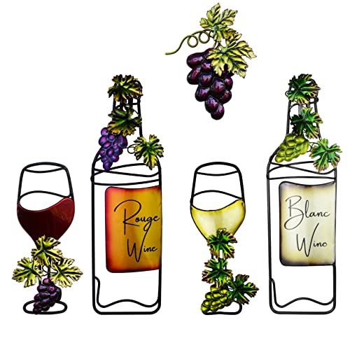 NewVees Vin metall kök väggkonst dekor 5 st vintage rött och vitt vinglas vinflaska falsk druva metalldekoration för hemmakök, vardagsrum, matsal, bondgård bar inomhus, 28,9 cm