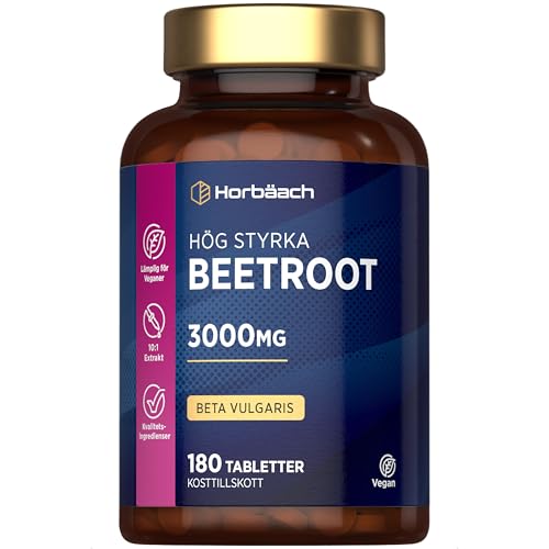 Rödbets Tabletter 3000mg | 180 Veganska Tabletter | Beetroot Extract Supplement | Kväveoxid Superfood Booster | av Horbaach