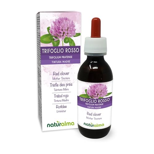 Rödklöver (Trifolium pratense) ört med blommor Alkoholfri modertinktur Naturalma - Flytande extrakt i droppar 120 ml - Kosttillskott - Vegan