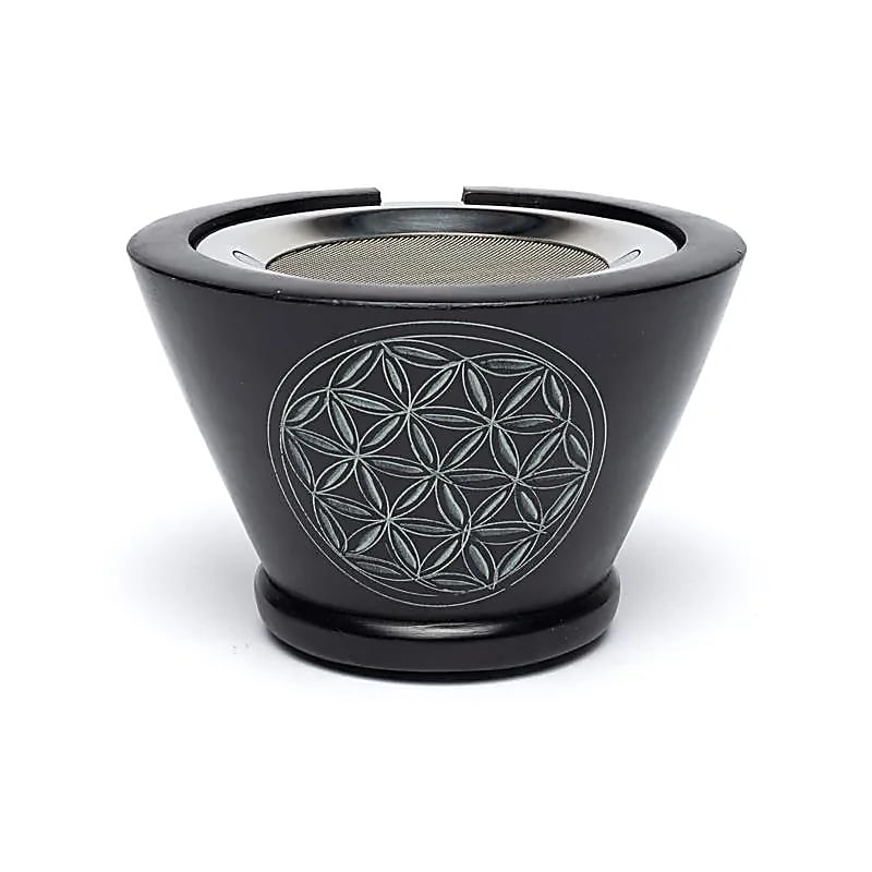 Rökelsebrännare, täljsten, svart Livets blomma med sil