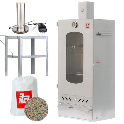 ITA Elektrisk rökugn 7000 – smokerset med uppvärmning, bord, rökgenerator – rökskåp med fönster och termometer – legerat stål – EU-kvalitet, direkt från tillverkaren