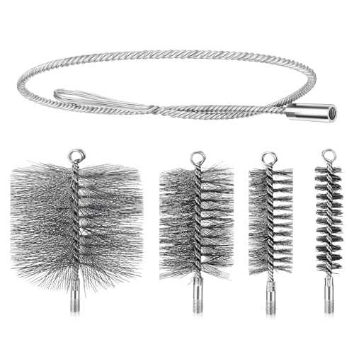 4 stycken ugnsrörsborste set 30/50/80/150 mm ugnsrörborste med skjutstång och 1 m ståltråd ugnsrör borste skorstenskvast set för skorsten eldstad ugnsrör, rökrör rengöring