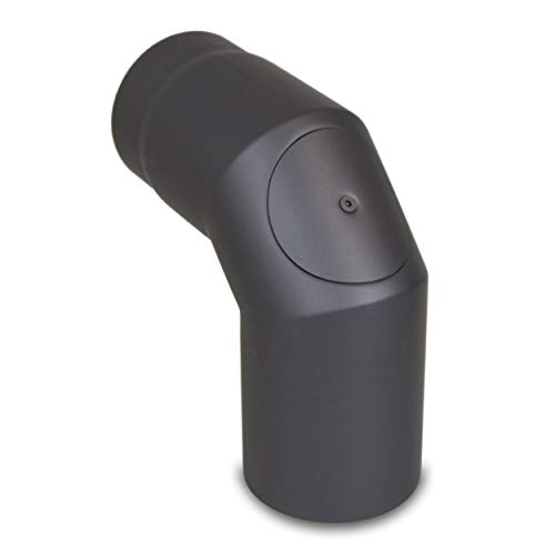 LANZZAS Ugnsrör båge 45° med dörr – i diameter Ø 150 mm – färg: svart – rökrör/knäbåge med rengöringsöppning