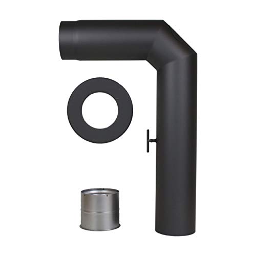 LANZZAS Rökrör, förskjutningsbåge med 100 mm förskjutning – i diameter Ø 150 mm – färg: svart – ugnsrör, dubbelbåge, golvbåge