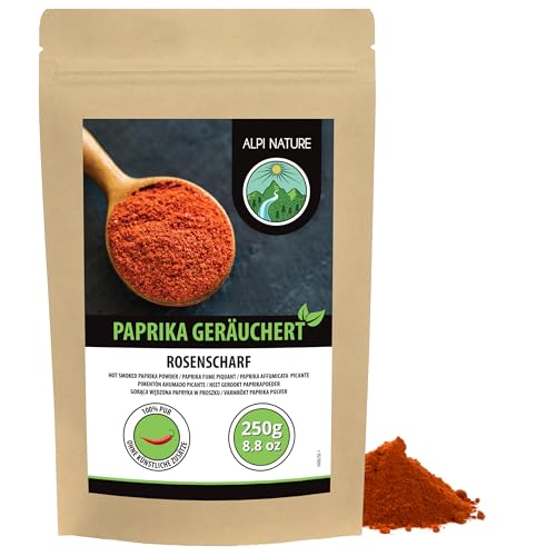 Varmrökt paprika, varm malda paprika från Spanien, rökt paprikapulver i återförslutningsbar förpackning (250 GR)
