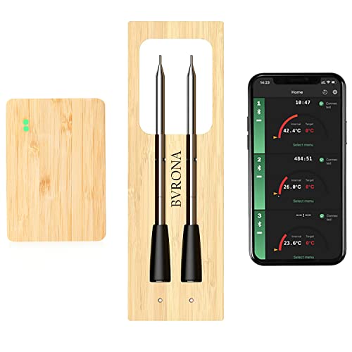 BFOUR BF-40 PRO Kötttermometer trådlös med 2 sonder, Bluetooth grilltermometer med smart bas, LCD-display, appkontroll, stektermometer digital för ugn, grill och rökugn