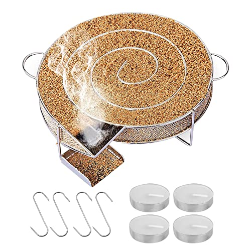 XTDMJ Rund kallröksgenerator för rökugn, premium röksnäckor i rostfritt stål med 4 krokar och 4 stearinljus, kall smoker, lämplig för alla grillrökare (återanvändbara, 20 18 5 cm)