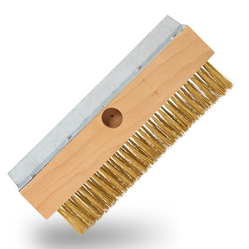 ECENCE Trådborste med vågformade mässingsborst, rengöring av pizzaugn, vedugn, rökugn, handborste för att ta bort sot, smuts,