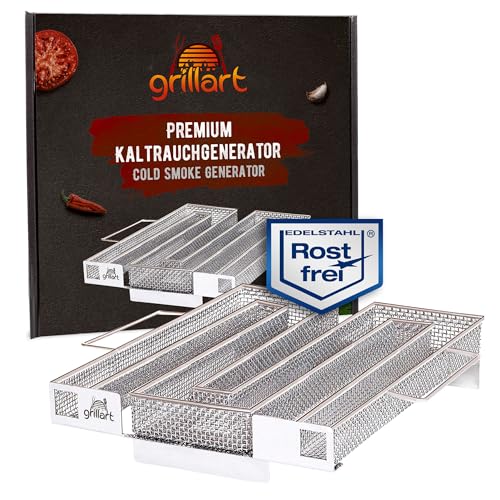 Grillart® Premium sparbedge, kallröksgenerator inkl. gratis första fyllning - rökugn tillverkad av 100 % rostfritt stål - högkvalitativa rökugn med handtag