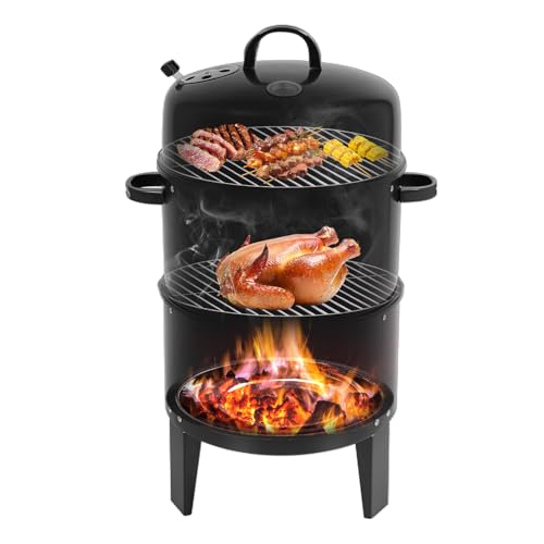 Rökugn rökugn rökugn med termostat, mobil matlagningsalternativ, 2 grillgaller, 3-i-1 kolgrill för rökning, grillning och matlagning