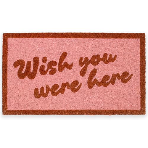 Fisura – Dörrmatta ingång “Wish you” av kokos med halkfri PVC-baksida. Handmålad rosa inomhusmatta. Rolig dörrmatta med meddelande för ingången. 70 x 40 cm.