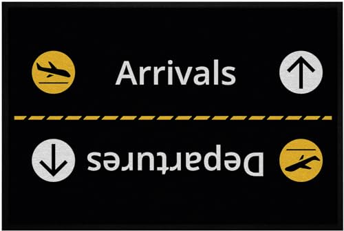 OM3® rolig dörrmatta med slogan – flygplats – Arrivals Departures – ankomst flyg – Airport Style IV – halkfri och tvättbar – 60 x 40 cm –