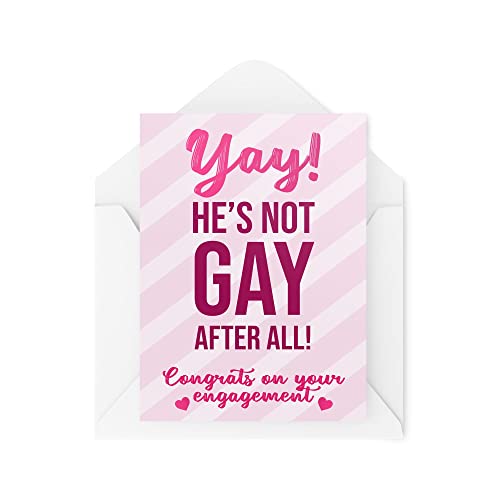 Roliga förlovningskort, Yay He's Not Gay After All, Congrats Engaged gratulationskort, vitsig humor skratt skämt rolig komedi CBH106