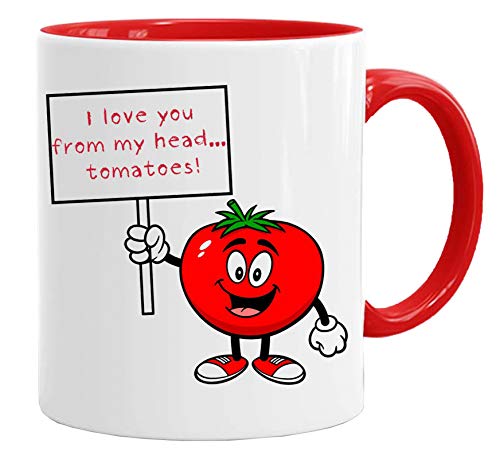Rolig alla hjärtans mugg 'I Love Your from My Head Tomatoes' 3,25 dl premium kvalitet arbete humor mugg & presentbox set