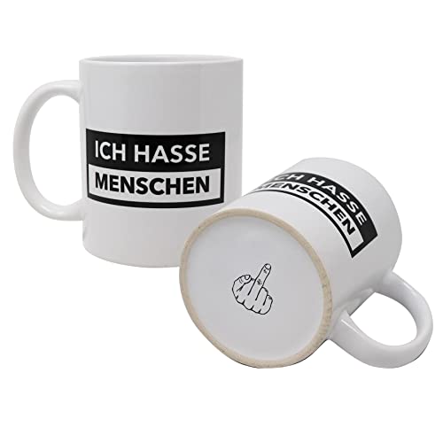 Close Up Rolig mugg – Jag hatar människor – med bottentryck långfinger – present till Misantroper, kollegor, vänner, morgonmuffel – vit kaffekopp