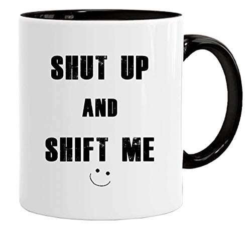 Rolig alla hjärtans mugg & presentbox set 'Shut up and Shift me' romantisk snarkning par man fru gifrlvän pojkvän 325 ml arbetshumor av hög kvalitet