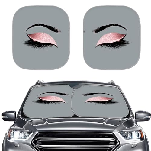 Howilath Skönhetsögon skugga 2 st vindruta solskydd för bil, roliga biltillbehör solskydd skydd suv rosa