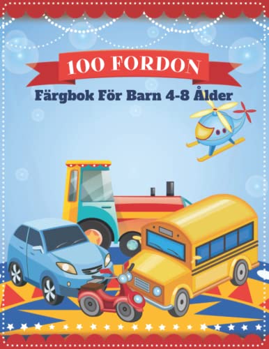100 Fordon Färgbok För Barn 4-8 Ålder: Roliga färgsidor om fordon med 50 illustrationer av bilar, helikoptrar, tåg, traktorer, flygplan och mycket mer, för barn, flickor och pojkar.