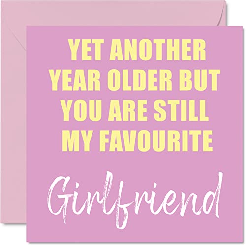 Roliga födelsedagskort till flickvän – ytterligare ett år äldre fortfarande min favorit – skämt humor gratulationskort från pojkvän födelsedagspresenter, 145 mm x 145 mm skämt humor gratulationskort present till partner