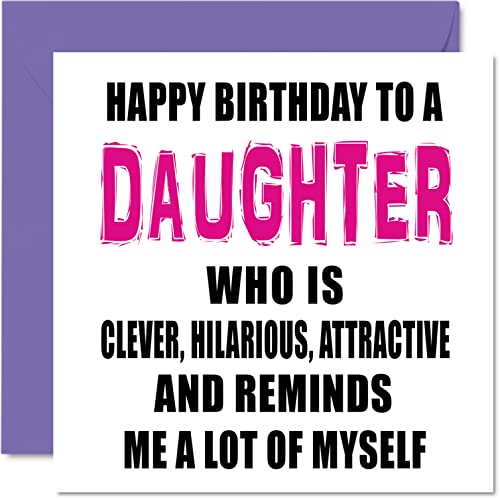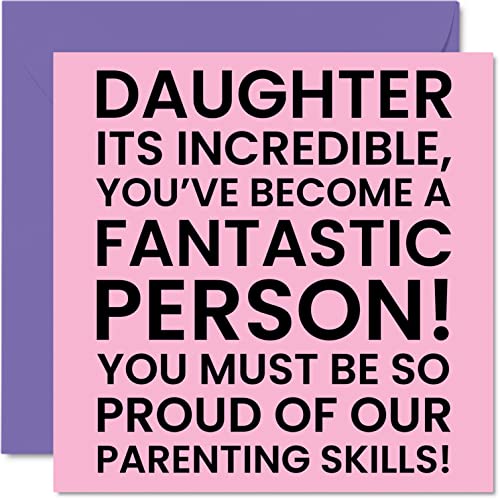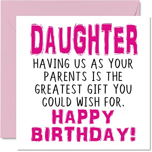 Roliga födelsedagskort till dotter – smart, roligt, snyggt – skämt grattis på födelsedagskort till dotter från mamma pappa, dotter födelsedagspresenter, 145 mm x 145 mm födelsedagskort present till dotter