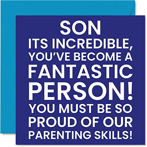 Roliga födelsedagskort till son – fantastisk person – skämt grattis på födelsedagskort till son från mamma eller pappa, son födelsedagspresenter från föräldrar, 145 mm x 145 mm födelsedagskort present till son