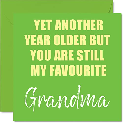 Roliga födelsedagskort för mormor – ytterligare ett år äldre fortfarande min favorit – skämt grattis på födelsedagskort från barnbarn födelsedagspresenter, 145 mm x 145 mm skämt gratulationskort present till mormor mormor