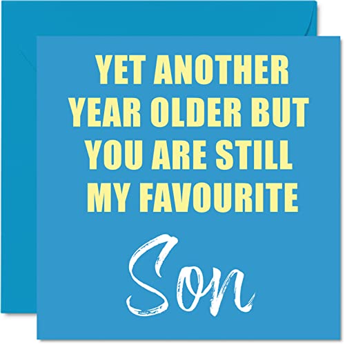 Roliga födelsedagskort till son – Another Year Older Still My Favorite – skämt grattis på födelsedagskort från föräldrar pappa mamma, son födelsedagspresenter, 145 mm x 145 mm skämt humor gratulationskort present