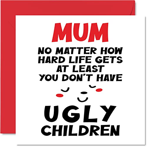 Roliga födelsedagskort för mamma – mamma fula barn – grattis på födelsedagskort för skämt för mamma från dotter son, mamma födelsedagspresenter, 145 mm x 145 mm mors dag gratulationskort till mamma