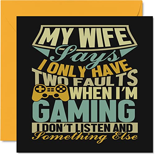 Roliga födelsedagskort för make – I Only Have Two Faults – skämt grattis på födelsedagskort för man från fru partner, make födelsedagspresenter, 145 mm x 145 mm alla hjärtans årsdag gratulationskort