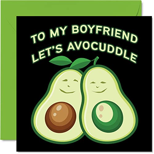 Roliga födelsedagskort för pojkvän – 'Boyfriend Let's Avocuddle' – Skämt grattis på födelsedagskort till pojkvän från flickvän, partner, pojkvän, födelsedagspresenter, 145 mm x 145 mm jubileumskort