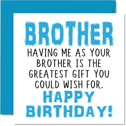 Roliga födelsedagskort till bror – överskridande lista – skämt grattis på födelsedagskort till bror från syster, bror födelsedagspresenter, 145 mm x 145 mm syskon gratulationskort present till bror