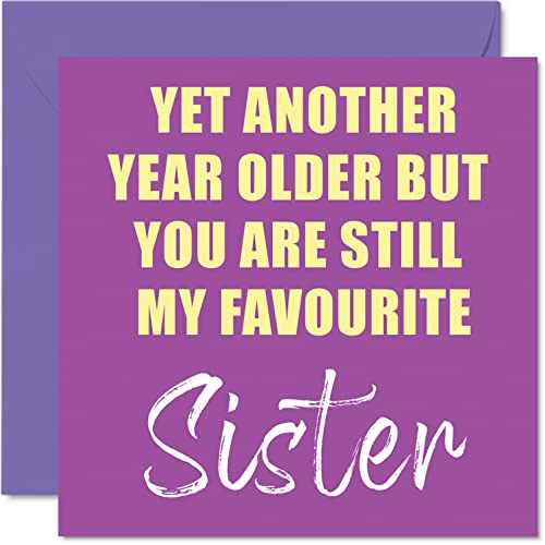 Roliga födelsedagskort till syster – ytterligare ett år äldre fortfarande min favorit – skämt grattis på födelsedagskort från syskon bror, syster födelsedagspresenter, 145 mm x 145 mm skämt humor gratulationskort för syster