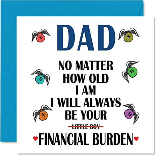 Roliga födelsedagskort för pappa – ekonomisk börda – skämt grattis på födelsedagen-kort för pappa från dotter, skämt far födelsedagspresenter, 145 mm x 145 mm fars dag gratulationskort present till pappa pappa