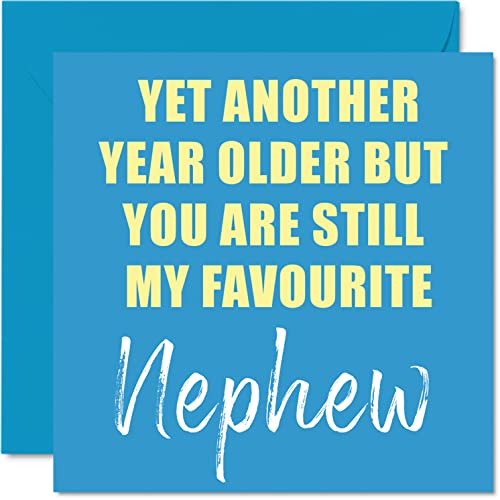 Roliga födelsedagskort till brorson – ett annat år äldre fortfarande min favorit – skämt grattis på födelsedagskort från moster moster faster farbror födelsedagspresenter, 145 mm x 145 mm skämt humor gratulationskort present