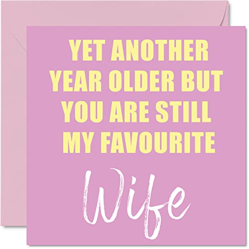 Roliga födelsedagskort till fru – ytterligare ett år äldre fortfarande min favorit – skämt humor gratulationskort från man födelsedagspresenter, 145 mm x 145 mm skämt humor gratulationskort present till partner följeslagare