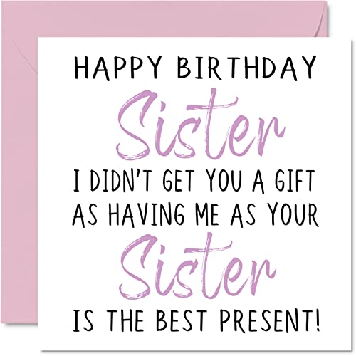 Roliga födelsedagskort för syster från syster – grattis på födelsedagen syster ingen gåva – födelsedagskort från syskon Sis, syster oförskämt banter födelsedagspresenter, 145 mm x 145 mm skämt humor gratulationskort för henne