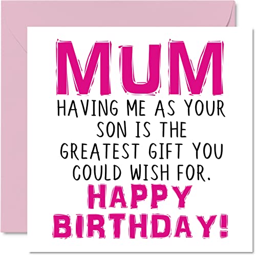 Roliga födelsedagskort till son – Having Me As Your Mum största presentönskan – Skämt grattis på födelsedagskort från mor, son skämt födelsedagspresenter, 145 mm x 145 mm gratulationskort för barn