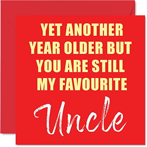 Roliga födelsedagskort till farbror – Another Year Older Still My Favorite – skämt grattis på födelsedagskort från brorson systerdotter födelsedagspresenter, 145 mm x 145 mm skämt humor gratulationskort present till farbror