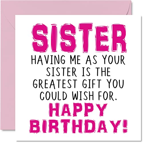 Roliga födelsedagskort till syster – Having Me As Your Sister Greatest Gift Wish – Skämt grattis på födelsedagskort från Step Sister, Banter födelsedagspresenter, 145 mm x 145 mm syskon