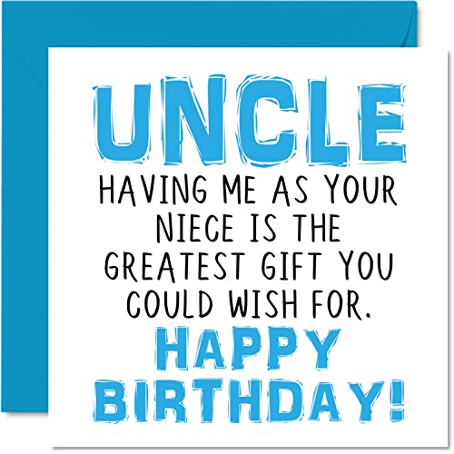 Roliga födelsedagskort till farbror – 'Having Me As Your Niece Greatest Gift Wish – skämt grattis på födelsedagskort till farbror från systerdotter, skämt födelsedagspresenter, 145 mm x 145 mm