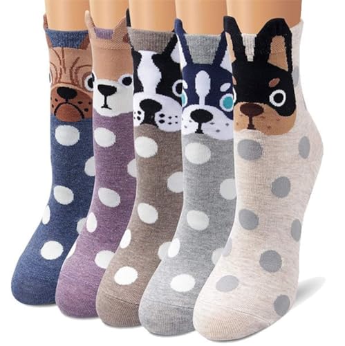 CUQOO 5 par kvinnor hundstrumpor, bomull hundvalp djur funkiga damstrumpor nyhet roliga flickstrumpor 4-7, vardagskläder ankelstrumpor jul födelsedagspresenter, Hunddesign 1, 35.5-40.5 EU