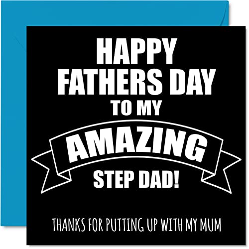Roliga fars dagskort för styvpappa – fantastisk styvpappa – skämt glad styvfar farsdagskort till pappa, styvfar födelsedagspresenter, 145 mm x 145 mm fars dag gratulationskort present till styvpappa pappa