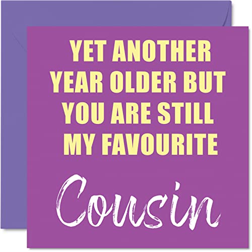 Roliga födelsedagskort för kusin – ytterligare ett år äldre fortfarande min favorit – skämt grattis på födelsedagskort från kusin födelsedagspresenter, 145 mm x 145 mm skämt humor gratulationskort present till kusin
