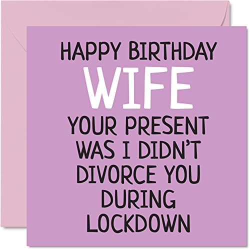 Roliga födelsedagskort till fru – skilde sig inte under låsning – skämt grattis på födelsedagskort till fru från make partner, fru födelsedagspresenter, 145 mm x 145 mm oförskämd skämt humor gratulationskort present