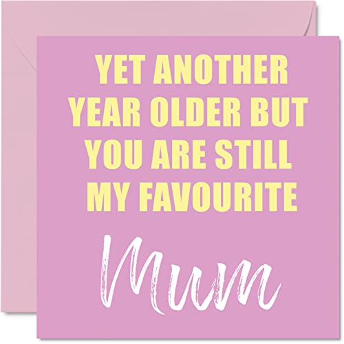 Roliga födelsedagskort till mamma – ytterligare ett år äldre fortfarande min favorit – skämt grattis på födelsedagskort från son dotter, mamma födelsedagspresenter, 145 mm x 145 mm skämt gratulationskort present till mamma mamma