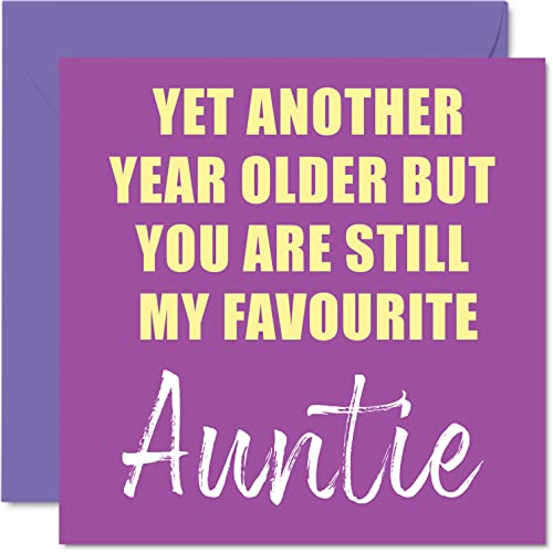 Roliga födelsedagskort till moster – ytterligare ett år äldre fortfarande min favorit – skämt grattis på födelsedagskort från brorson systerdotter födelsedagspresenter, 145 mm x 145 mm skämt humor gratulationskort present till moster moster