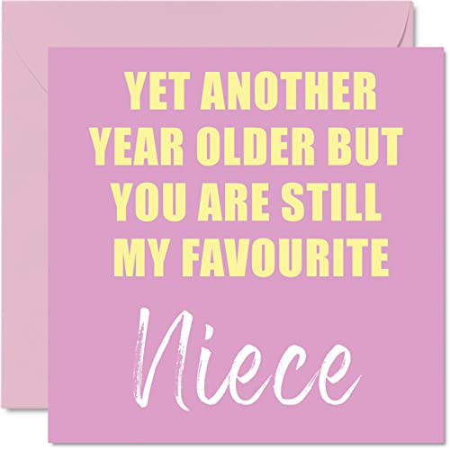 Roliga födelsedagskort till systerdotter – ett annat år äldre fortfarande min favorit – skämt grattis på födelsedagskort från farbror moster faster faster faster födelsedagspresenter, 145 mm x 145 mm skämt humor gratulationskort present
