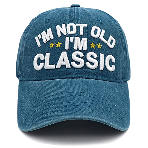 Roliga pensionerings- eller födelsedagspresenter hattar för män kvinnor, I'm Not Old Classic Baseballkeps Skämtpresenter till pappa morfar gammal man, I'm Not Old I'm Classic-Blue Tvättad, one size